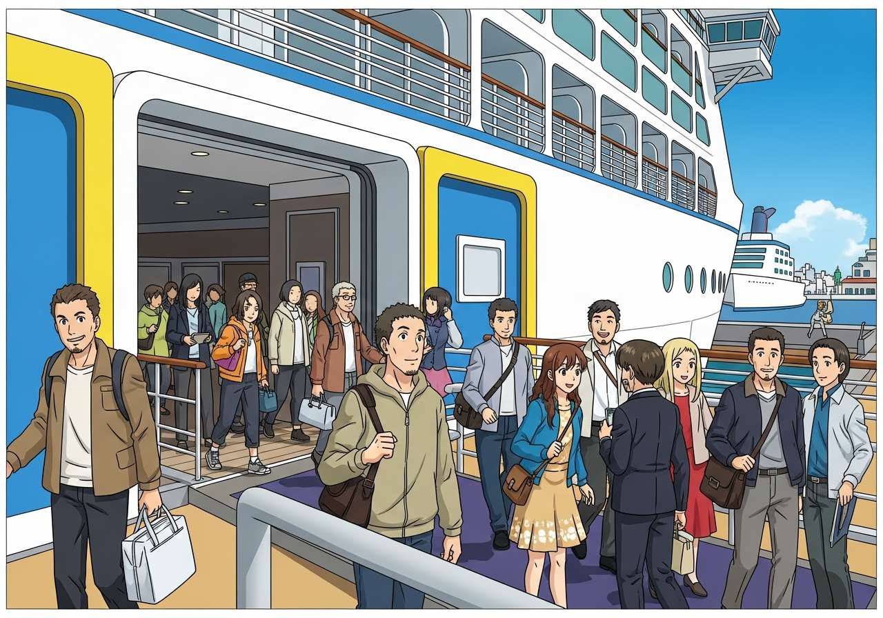 中英語の「abord」から派生し、古フランス語の「a bord」(船上に)に由来します。「a」(~へ、~の上に)と「bord」(船の側面、板)から構成されています。元々は船の側面にいることを指していましたが、後にあらゆる乗り物に乗っていることを意味するようになりました。