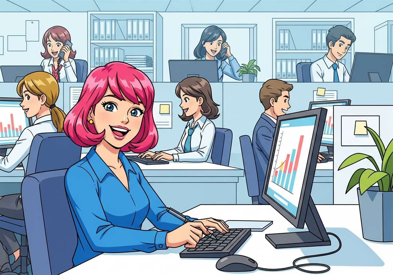 彼女は部門のすべての事務作業を担当しており、スケジュール管理やファイリングなどを行っています。