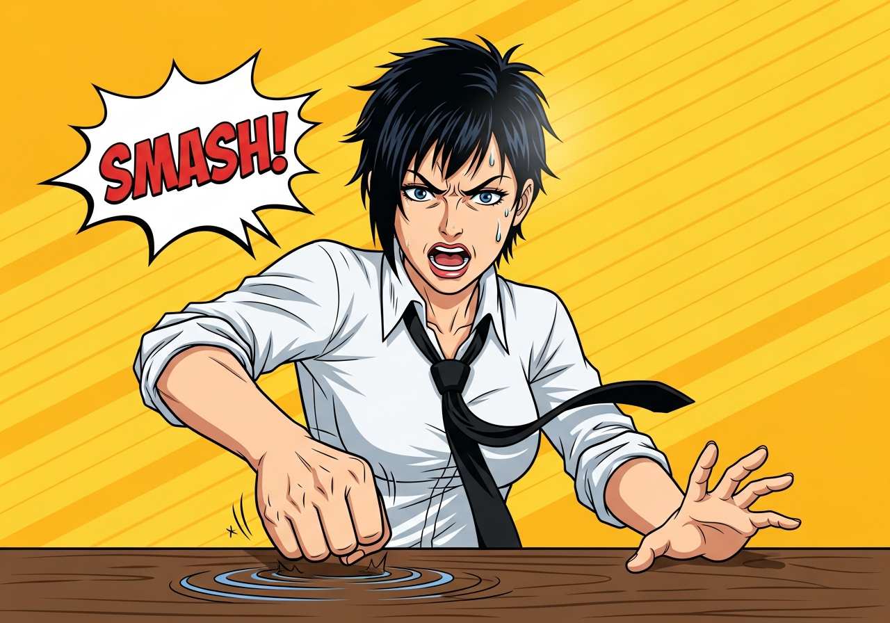 She angrily slammed the door and left the room.