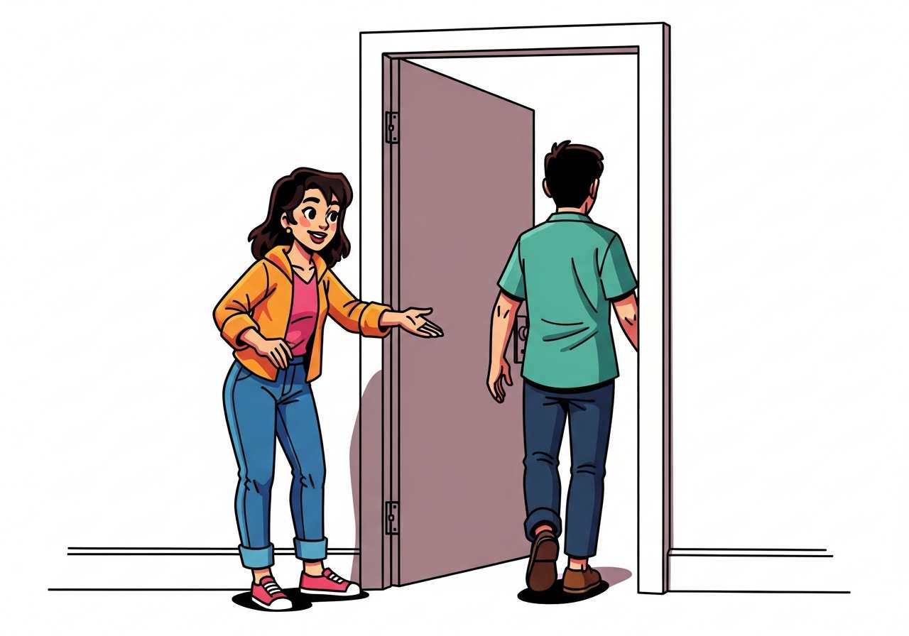 She stepped aside to let him pass.