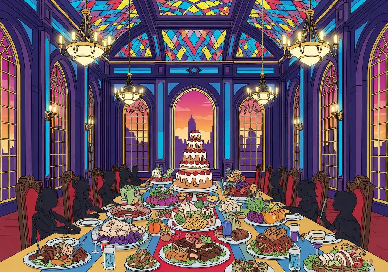 大規模で正式な宴会や祝宴を指す言葉です。特別な行事や祝い事の際に開かれる豪華な食事会を表します。