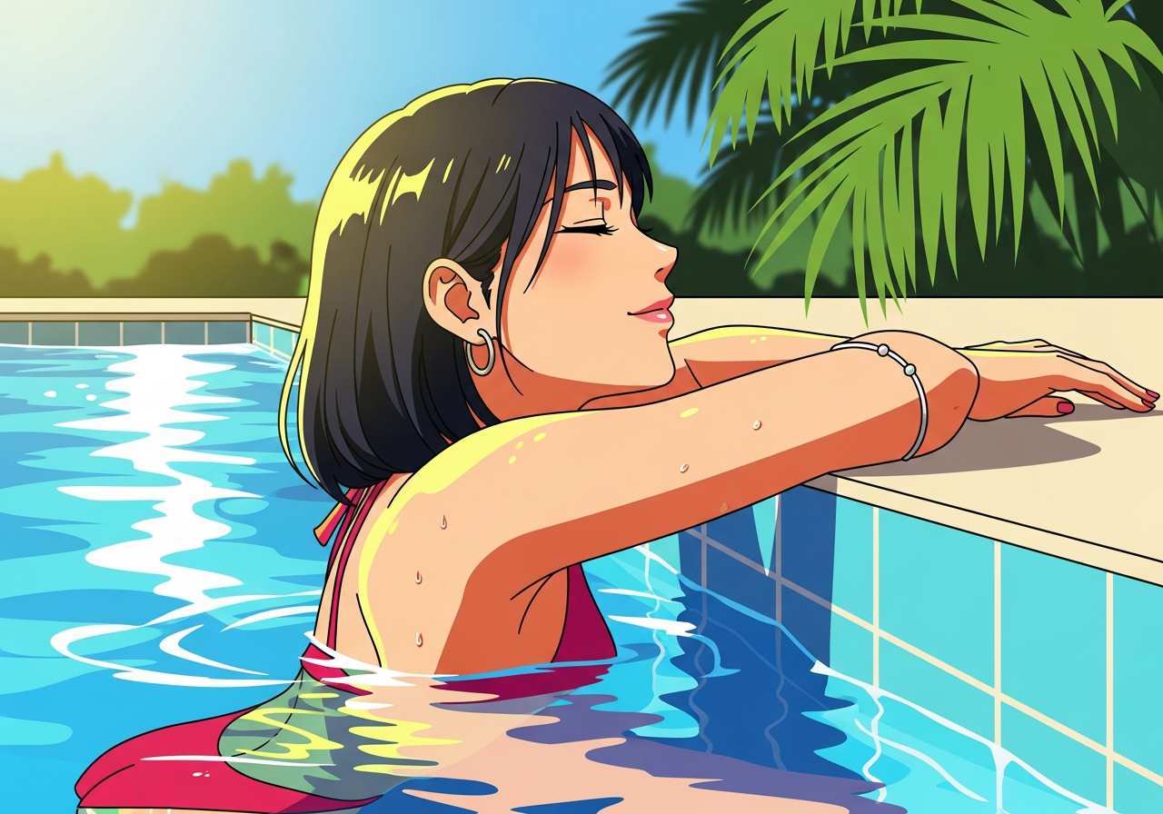 水や液体に体を浸すこと、または入浴すること。海や川で泳ぐという意味でも使われます。