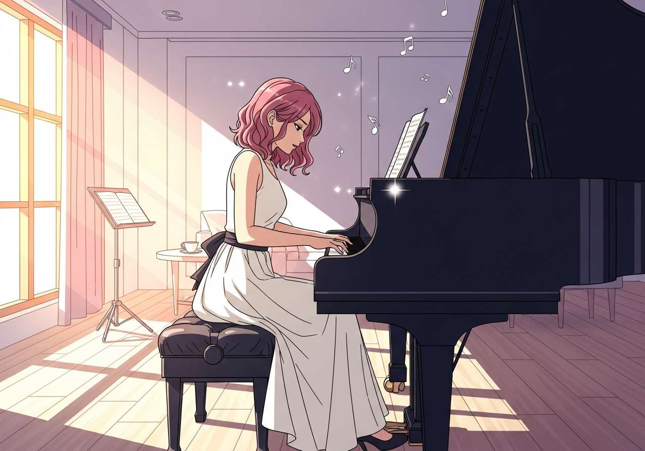 彼女はピアノを見事に弾く。