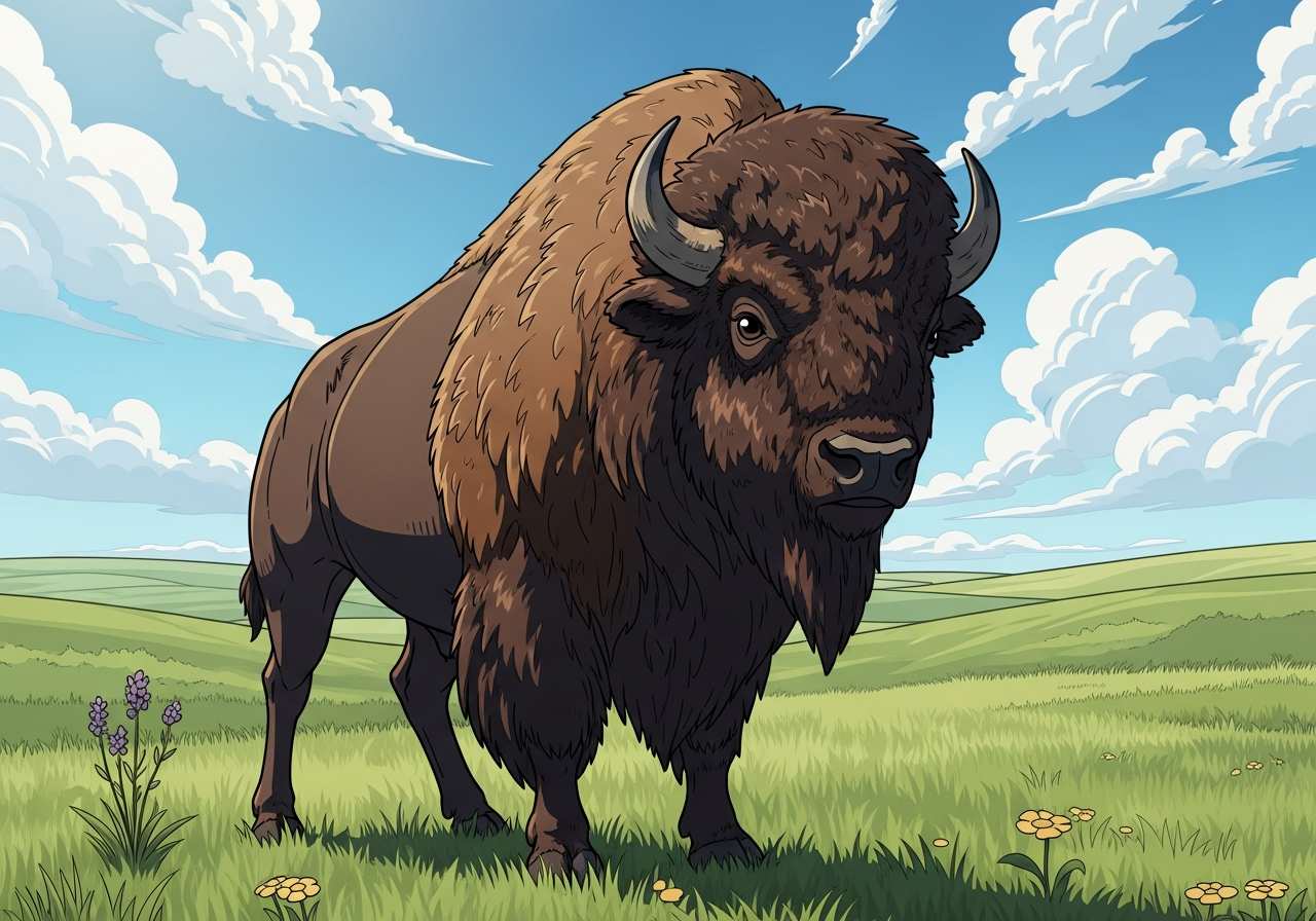 バイソンは北アメリカやヨーロッパに生息する大型の野生牛の一種です。厚い毛皮と肩の大きなこぶが特徴的です。