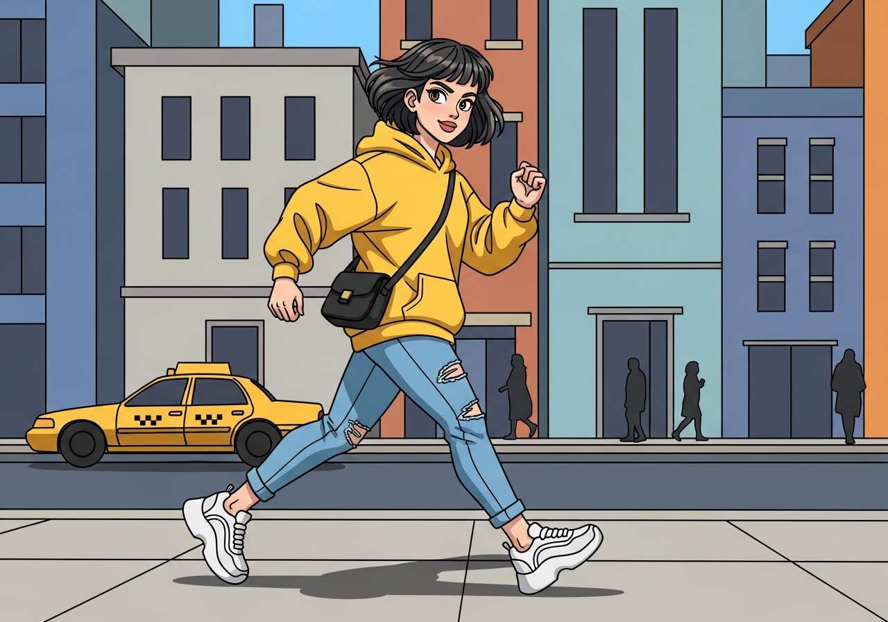 She walked briskly through the park to catch her train.
