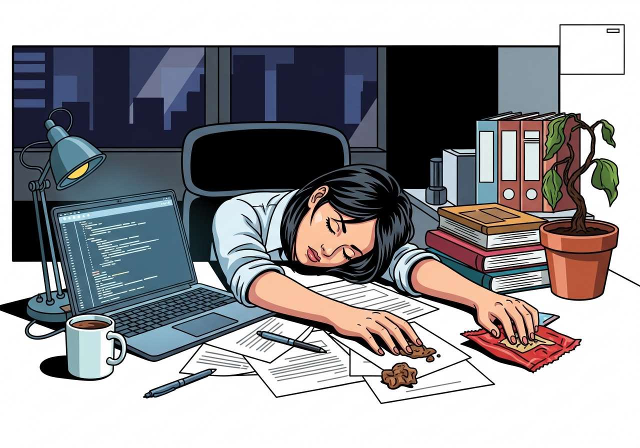 After years of overwork, he became a complete burnout.