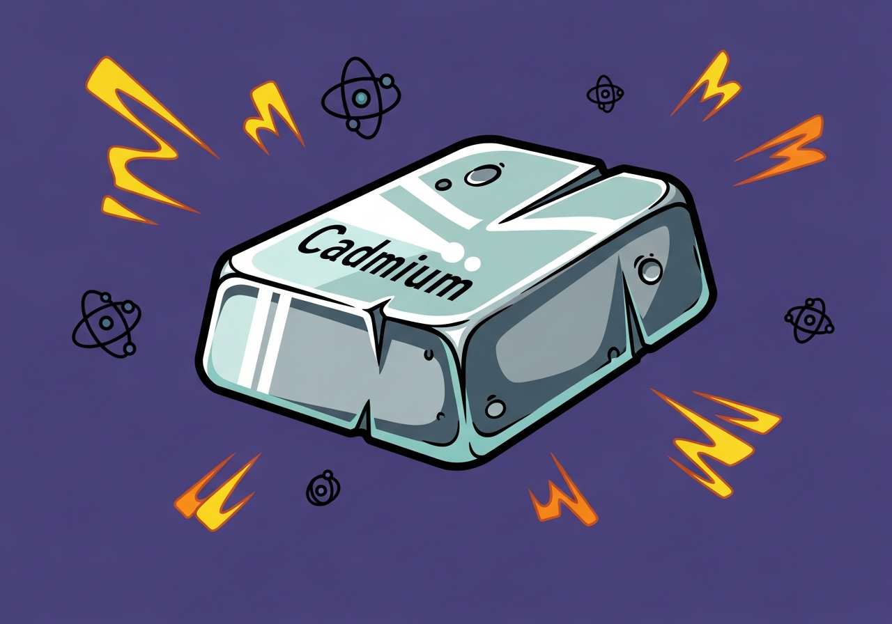 カドミウムは、青みがかった白色の軟らかい金属元素で、電池や顔料、めっきなどに使用されます。有毒な重金属として知られています。