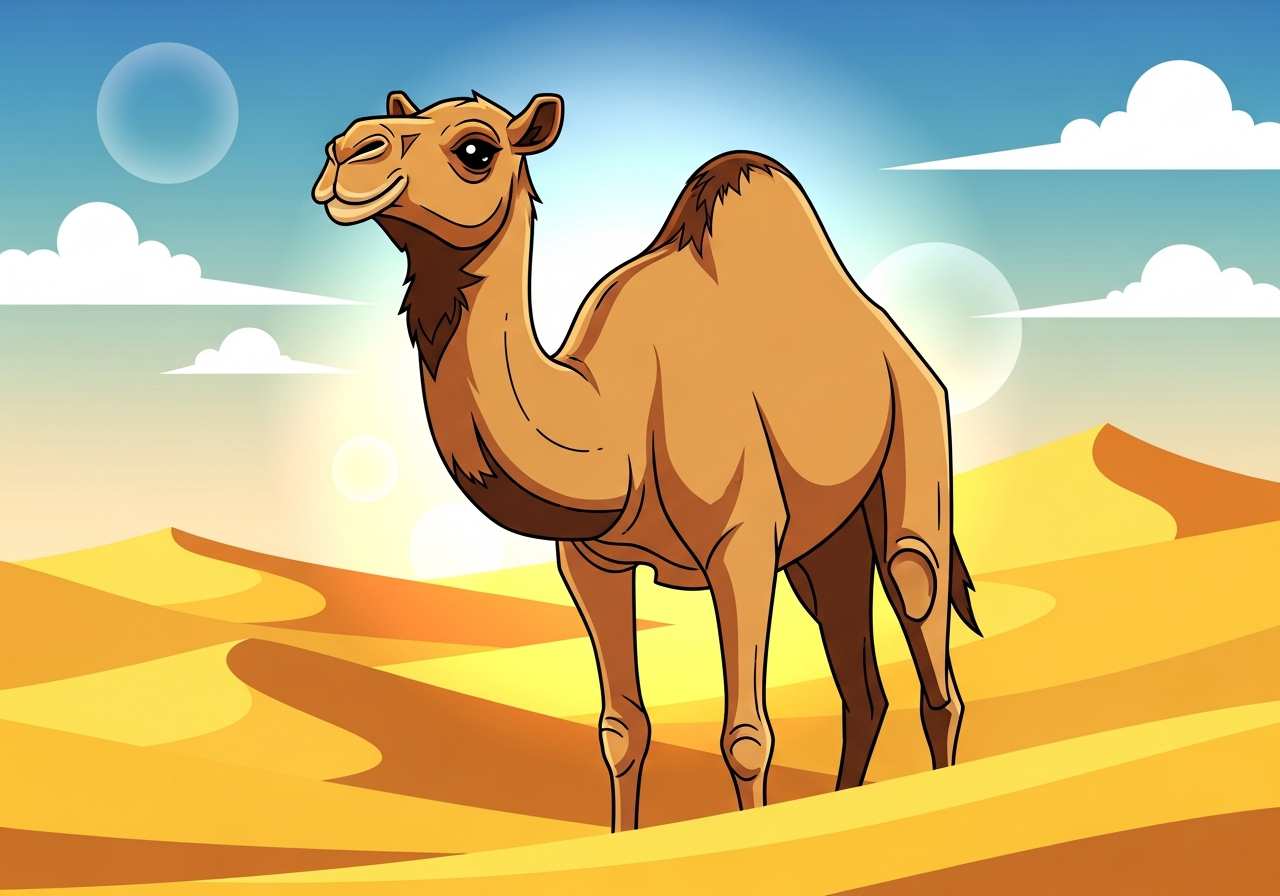 砂漠に生息する大型の哺乳動物で、背中にこぶがあり、長距離の移動や荷物の運搬に使われます。