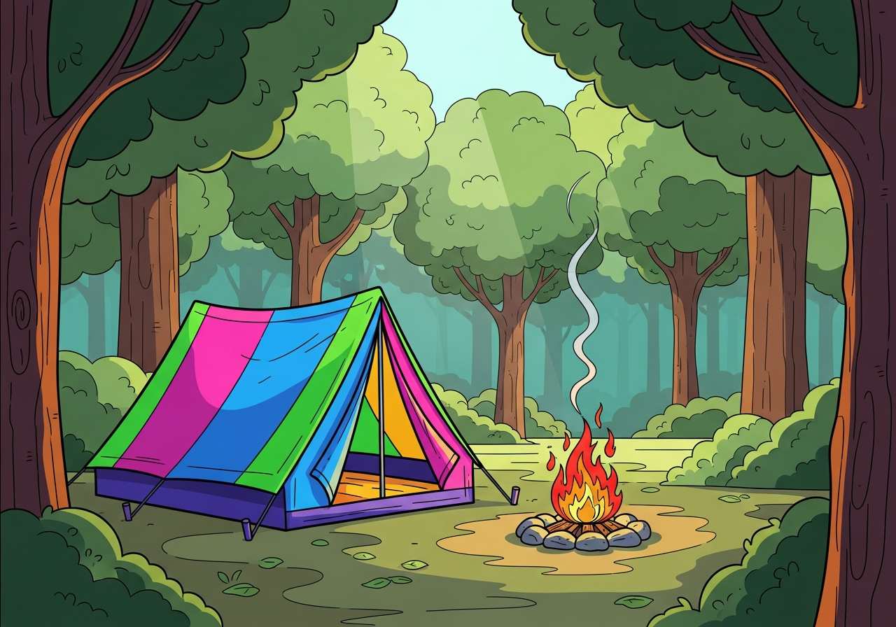 「キャンプ」は、屋外で一時的に滞在する場所、またはそこで過ごす活動を指します。テントを張って宿泊したり、軍隊や難民などが集まる場所としても使われます。