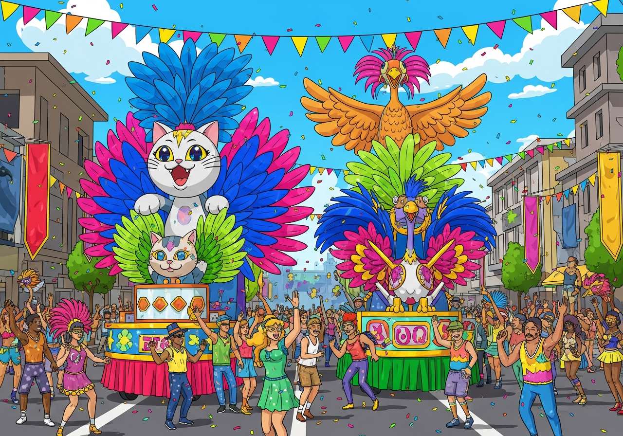 祭りやパレード、仮装などを楽しむ大規模なお祝いイベント。特にキリスト教の四旬節前に行われる祝祭を指すことが多い。