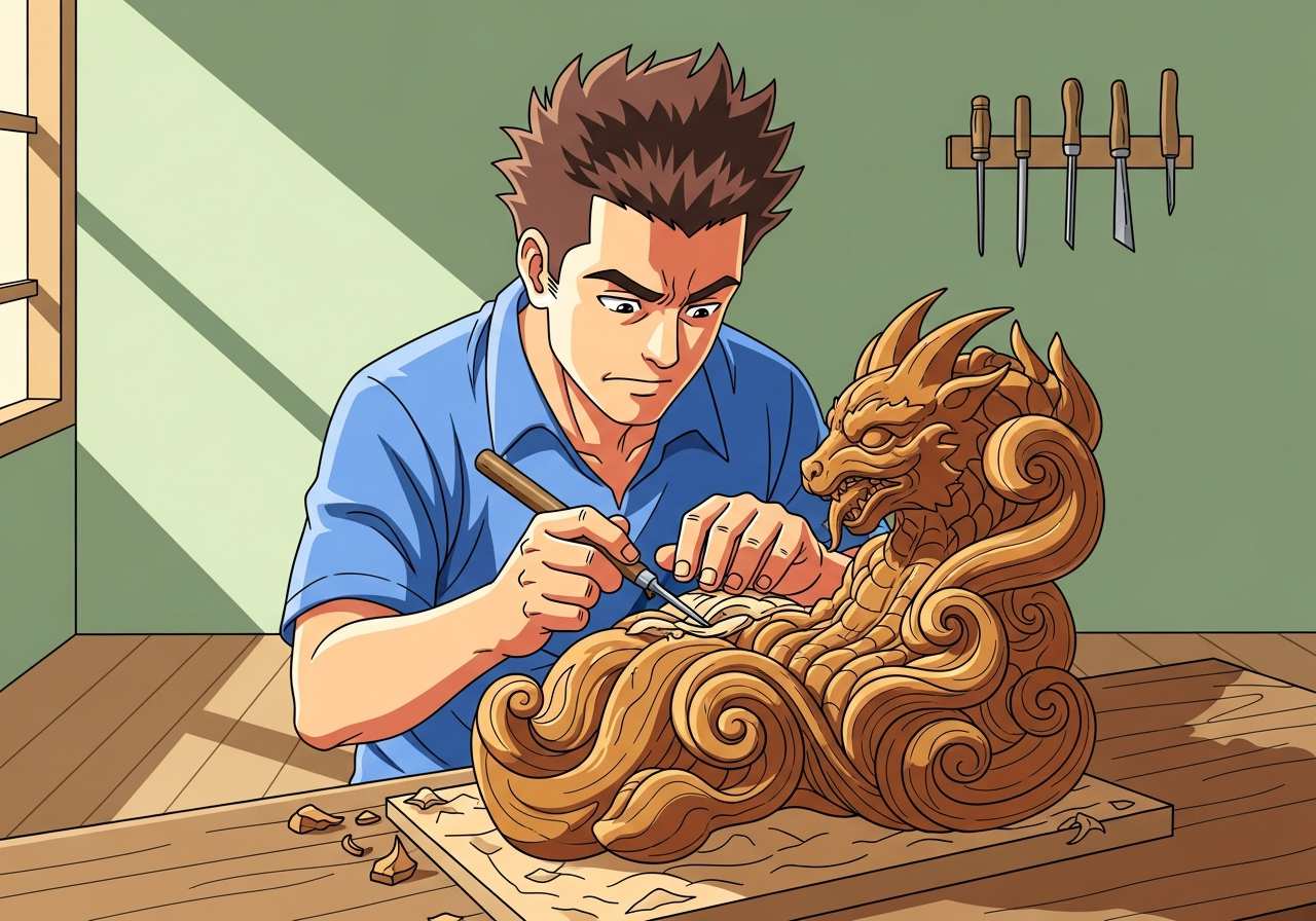 木や石などの硬い素材を刃物で削って形を作ること。また、肉を切り分けることも意味します。
