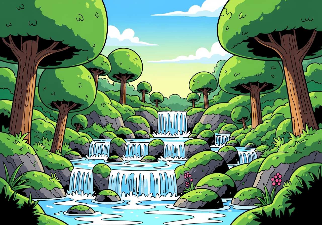 水や物事が段階的に流れ落ちる様子を表す語。滝のように連続して落ちる動きや、連鎖的に広がる現象を指します。