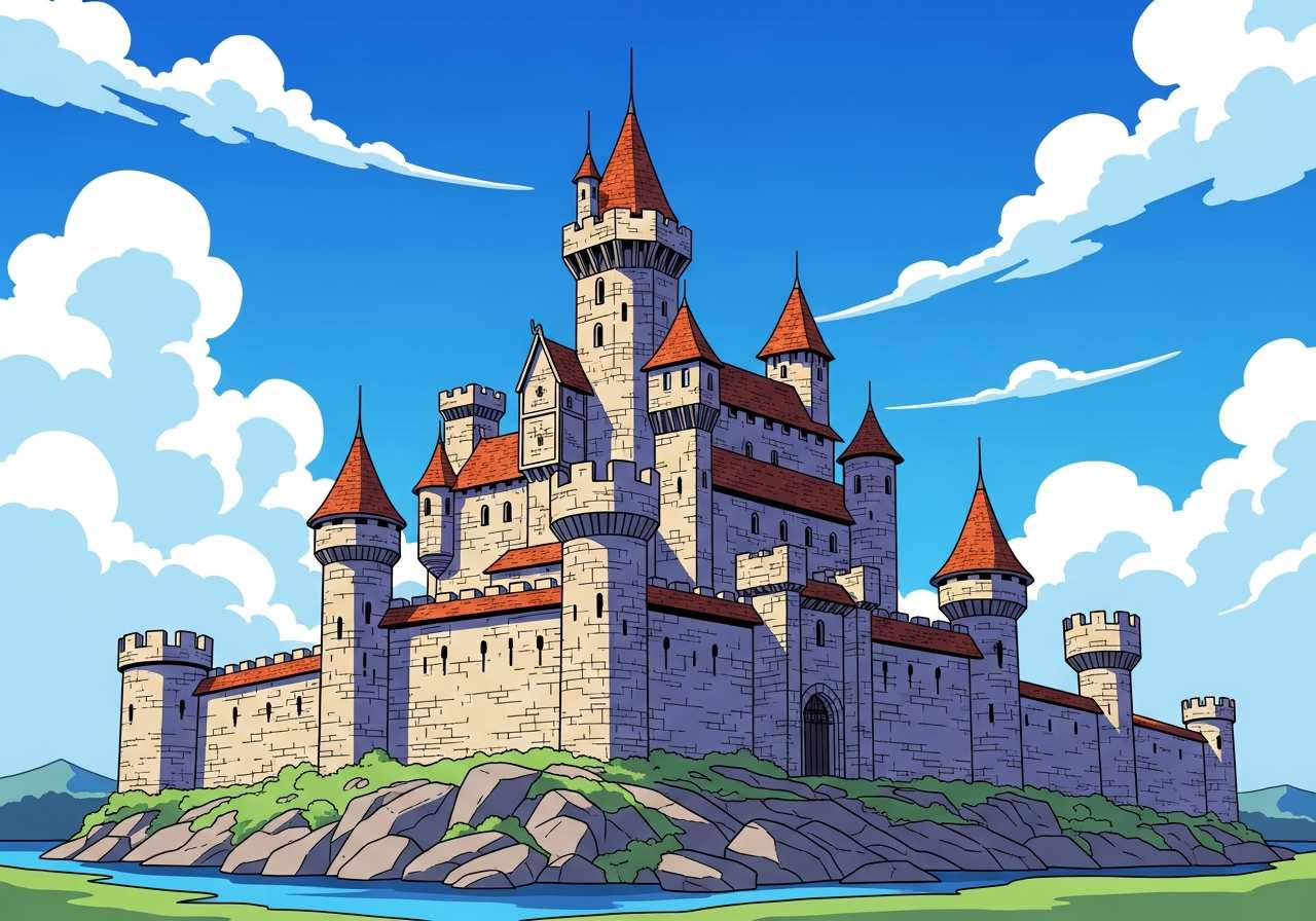 王や貴族が住んだ、防御のための厚い壁と塔を持つ大きな建物