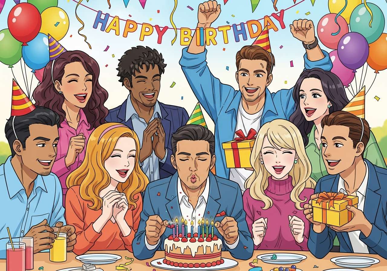 「祝う」「祝賀する」という意味の動詞。誕生日、記念日、成功などの特別な出来事や機会を喜びをもって記念すること。