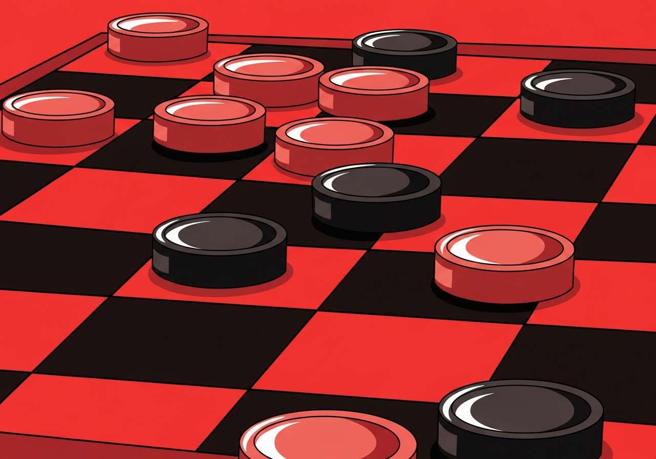 彼女はチェッカーの駒を盤上で動かして、相手の駒を取った。