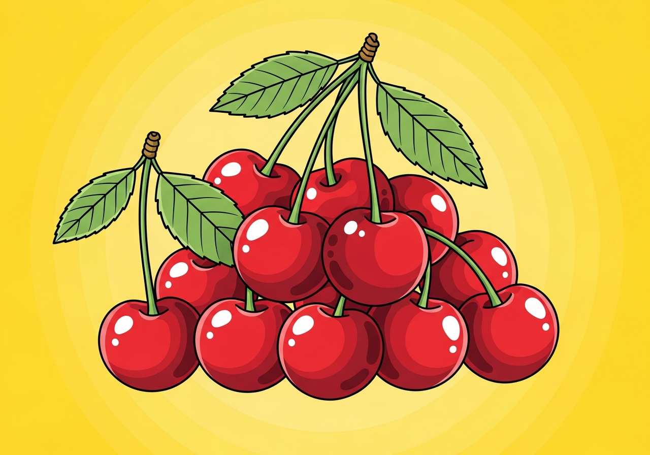サクランボの木になる小さくて丸い赤い果物。甘酸っぱい味が特徴で、生食やデザート、ジャムなどに使われます。