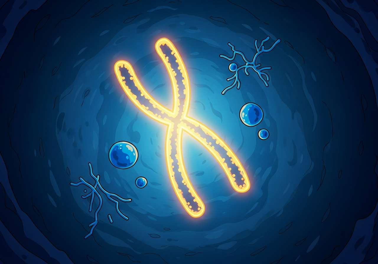 細胞の核内にある糸状の構造体で、遺伝情報(DNA)を含んでいます。人間は通常46本の染色体を持っています。