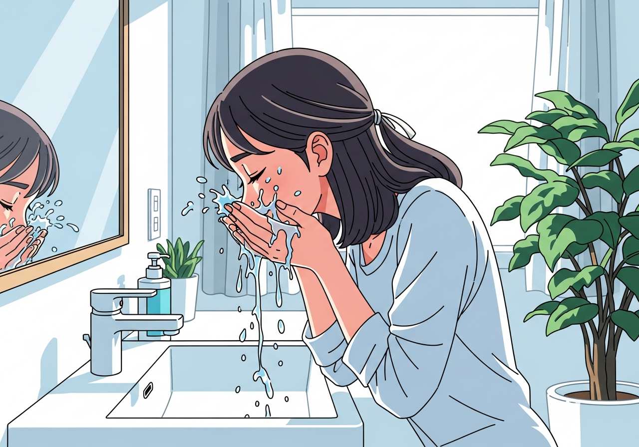 彼女は毎晩寝る前に顔をクレンジングする。