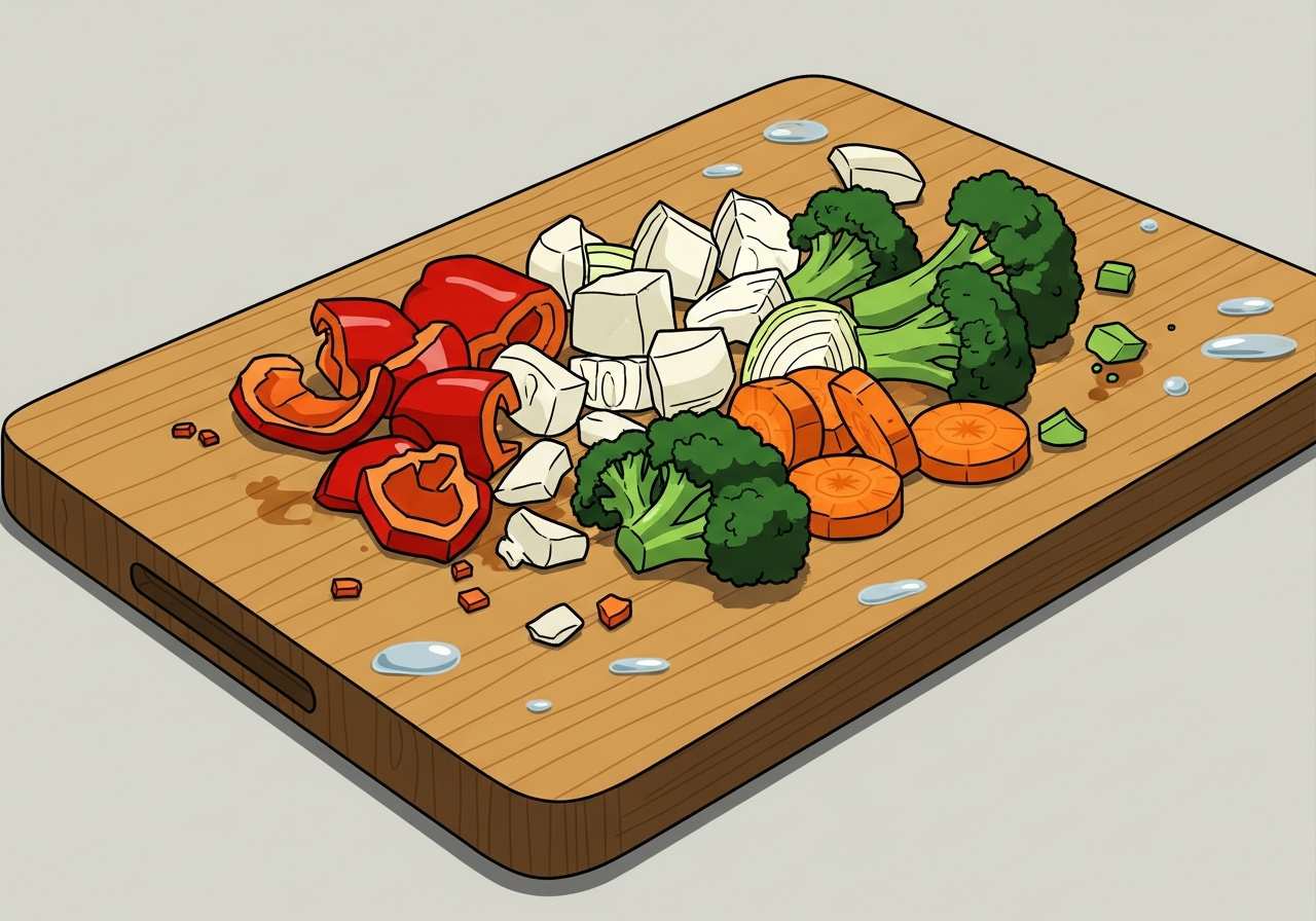 「粗く」「大まかに」という意味の副詞。食材を粗く刻む場合や、大雑把な方法を表す際に使用されます。