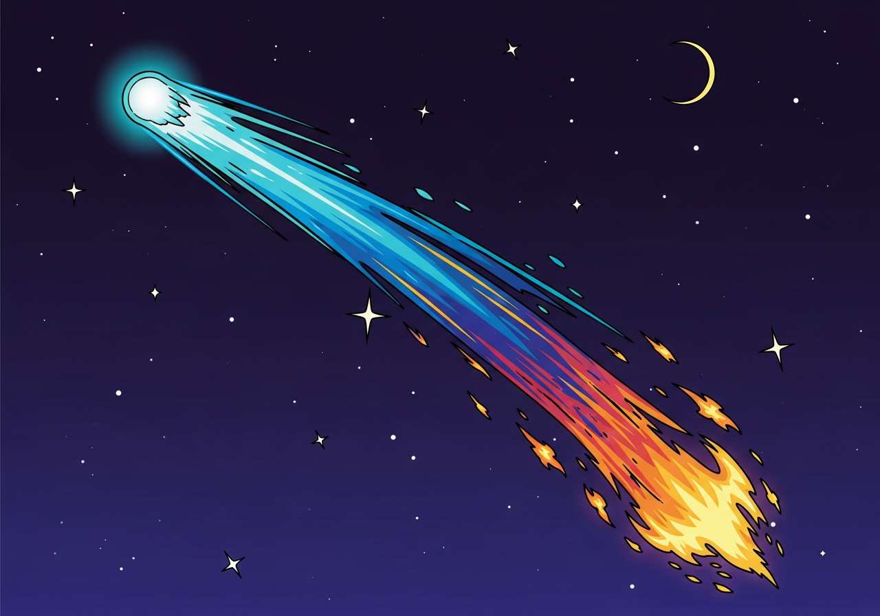 ラテン語の「cometa」に由来し、ギリシャ語の「komētēs」(長い髪の星)から来ています。「komē」(髪)という語が元になっており、彗星の尾を髪に見立てたことに由来します。