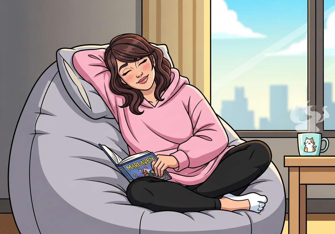 「comfortable(快適な)」を短縮したくだけた表現で、心地よさや居心地の良さを表す形容詞です。