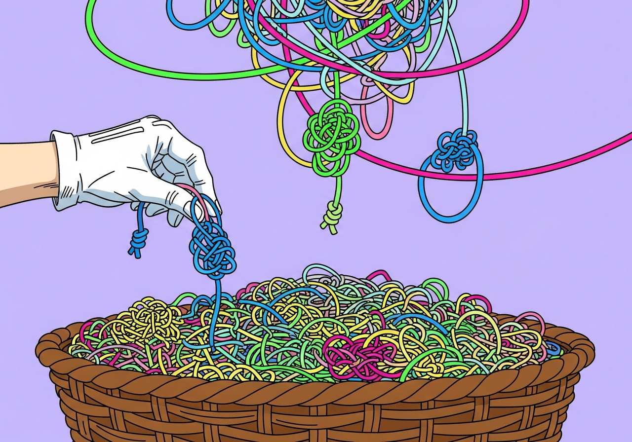 「複雑にする」「ややこしくする」という意味の動詞。物事をより難しく、理解しにくくすることを表します。