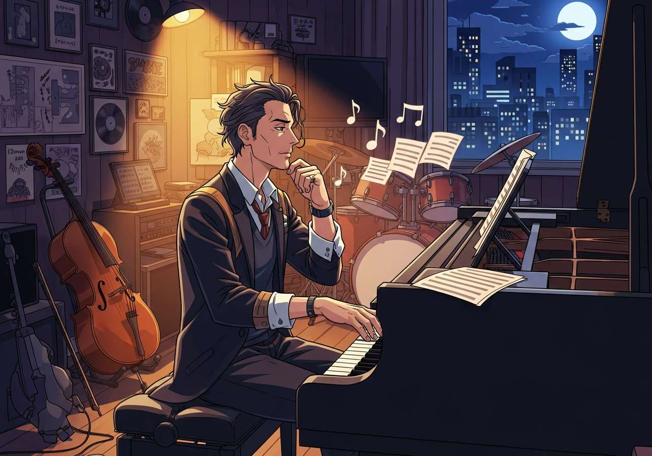 音楽作品を創作する人を指す言葉です。クラシック音楽やポピュラー音楽など、様々なジャンルで使われます。