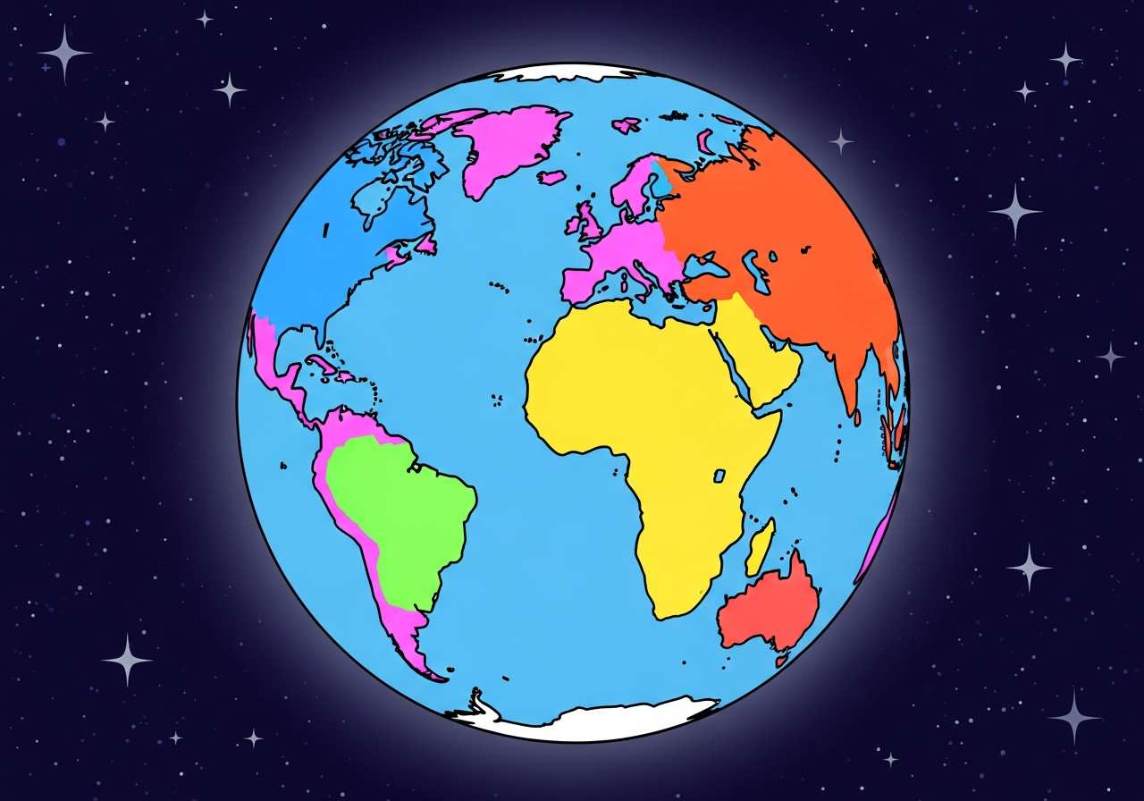 地球上の大きな陸地を指す名詞。アジア、アフリカ、ヨーロッパ、北アメリカ、南アメリカ、オーストラリア、南極の7つがあります。