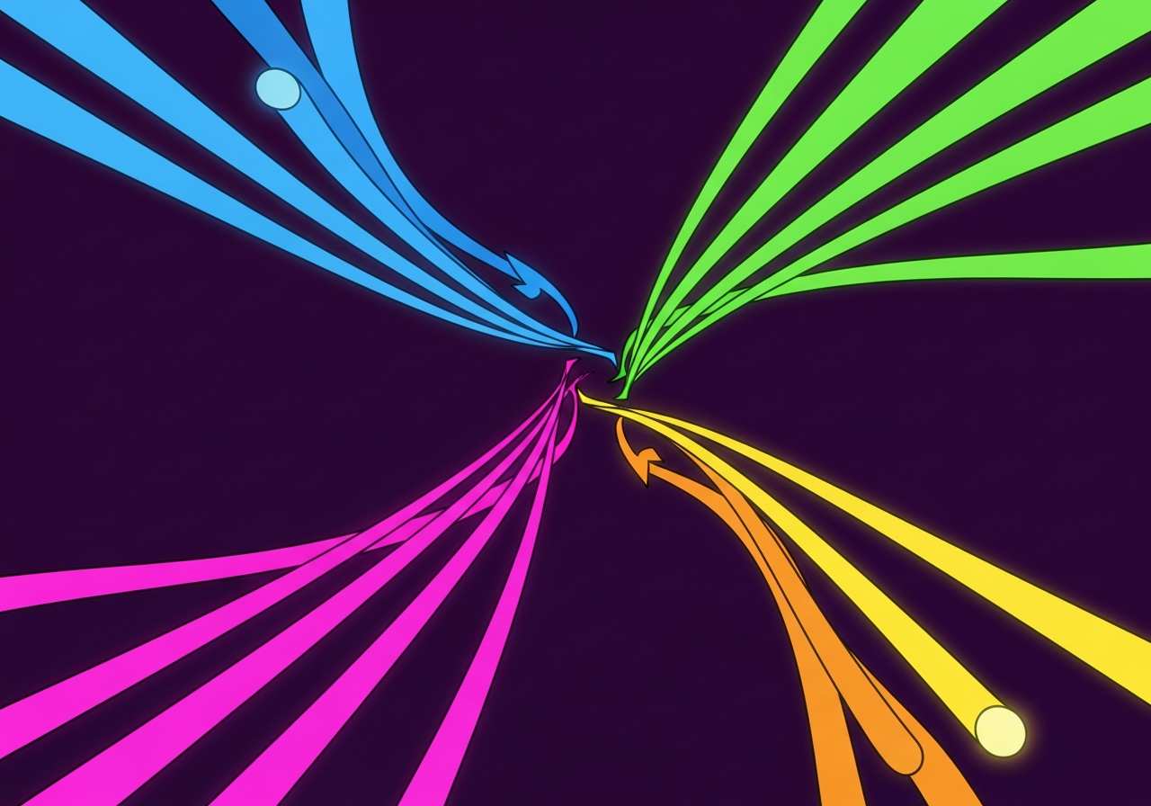 異なる方向から一点に向かって集まること、または意見や考えが一致すること。