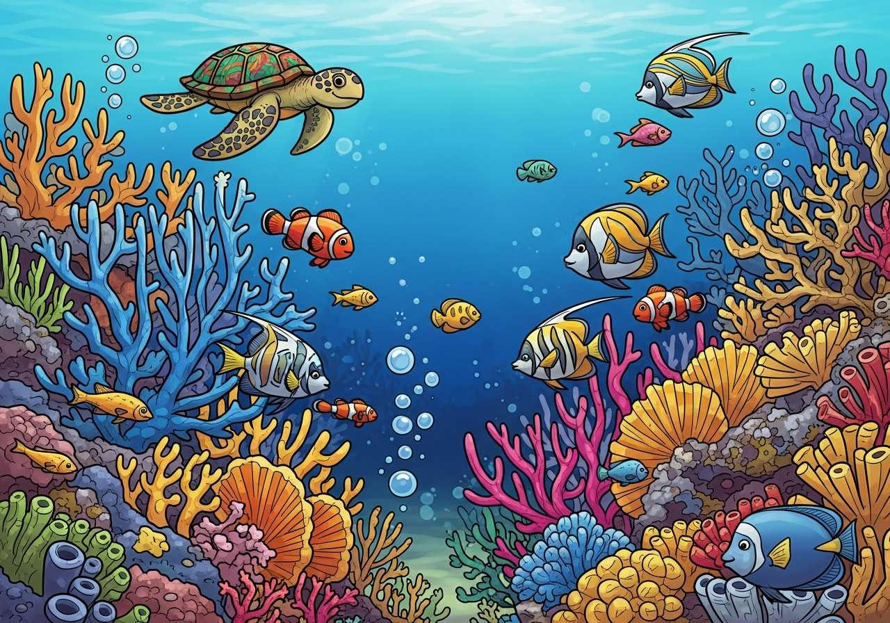 サンゴ礁には色とりどりの魚がたくさん住んでいます。