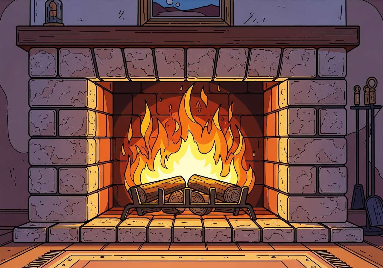 私たちは暖炉の火のパチパチという音に耳を傾けた。