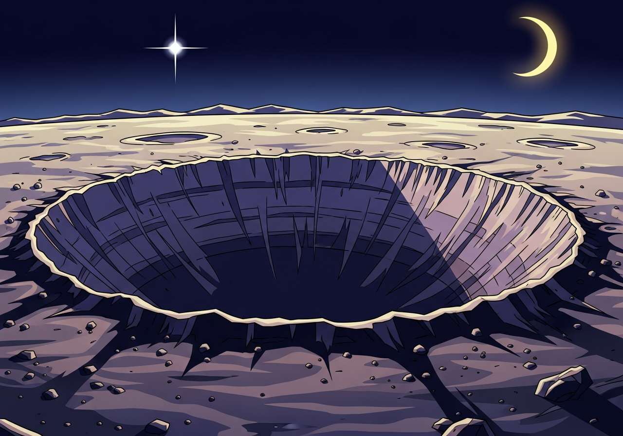 火山や隕石の衝突によってできた大きなくぼみ。月面のクレーターが代表的な例です。