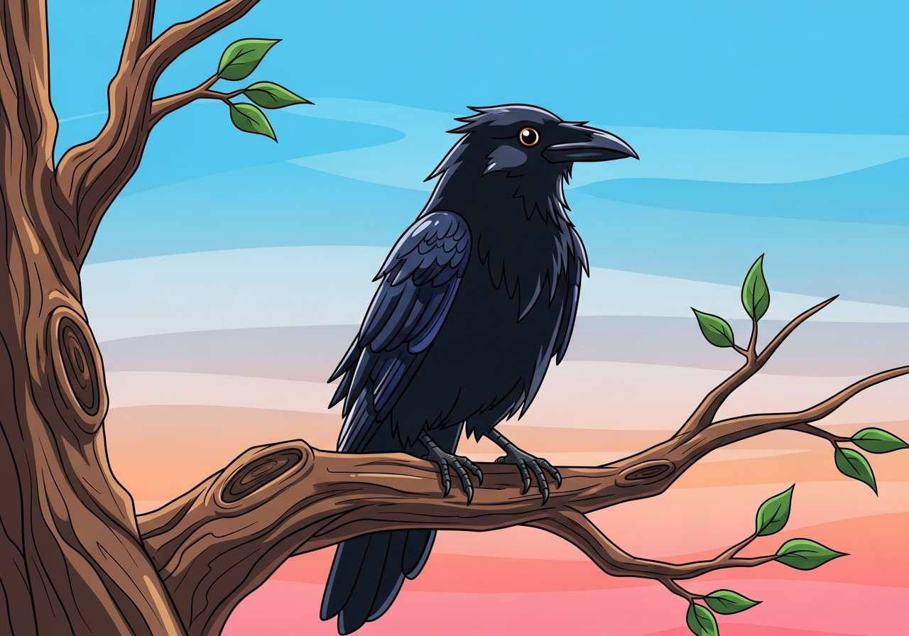 カラス科の大型の黒い鳥で、特徴的な鳴き声を持つ。
