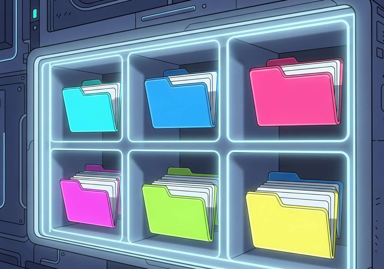 コンピュータ上で情報を体系的に保存・管理するためのシステム。データを効率的に検索・更新できるように構造化されています。