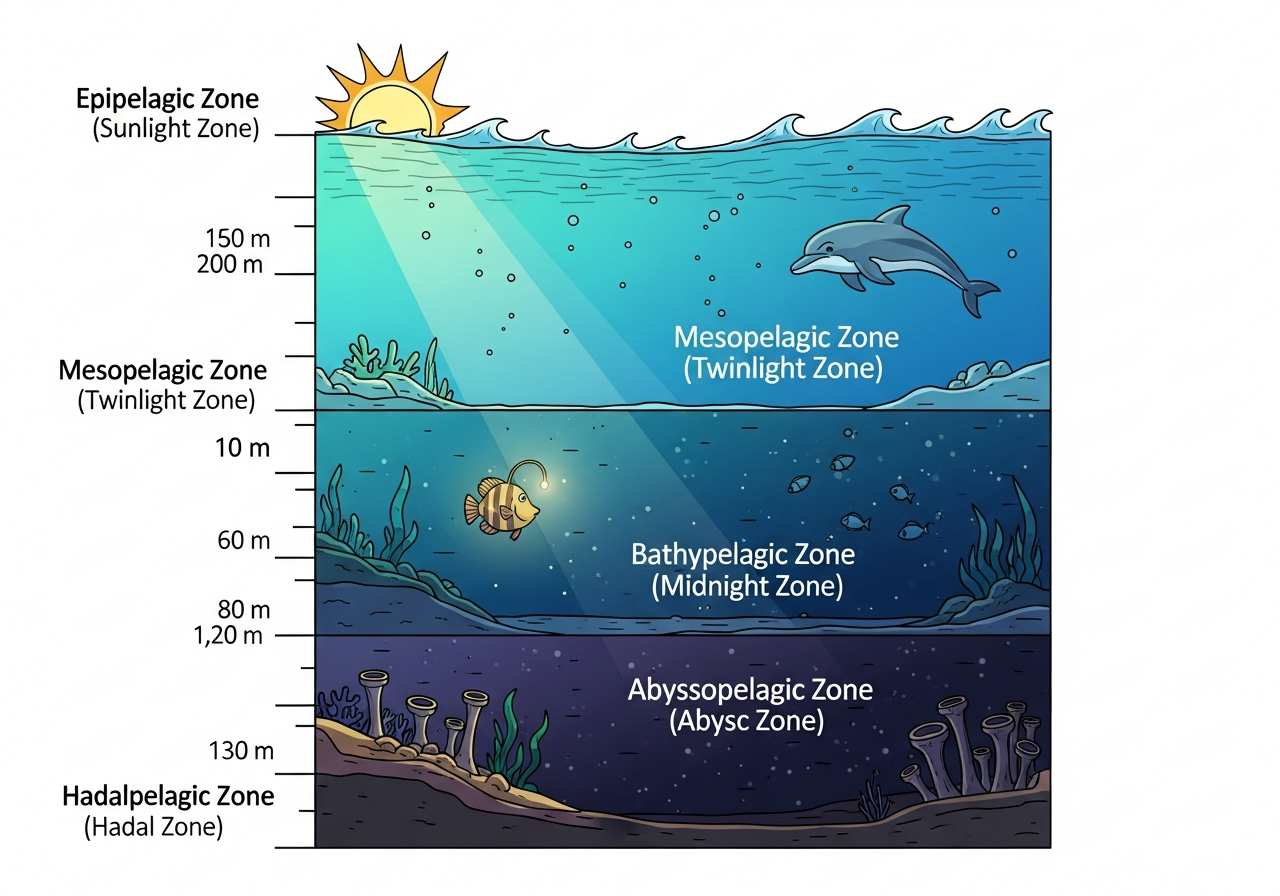 物理的な深さや奥行きを表す名詞。水深、知識の深さ、感情の深さなど、具体的・抽象的な「深さ」を幅広く表現します。