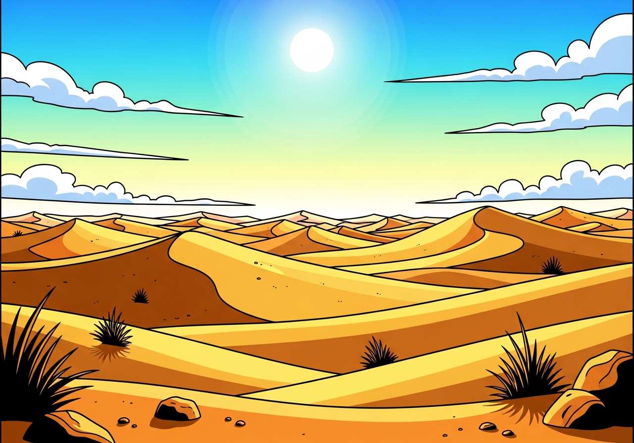 「desert」は、雨がほとんど降らず、植物がほとんど育たない乾燥した広大な土地を指します。サハラ砂漠やゴビ砂漠などが代表的な例です。