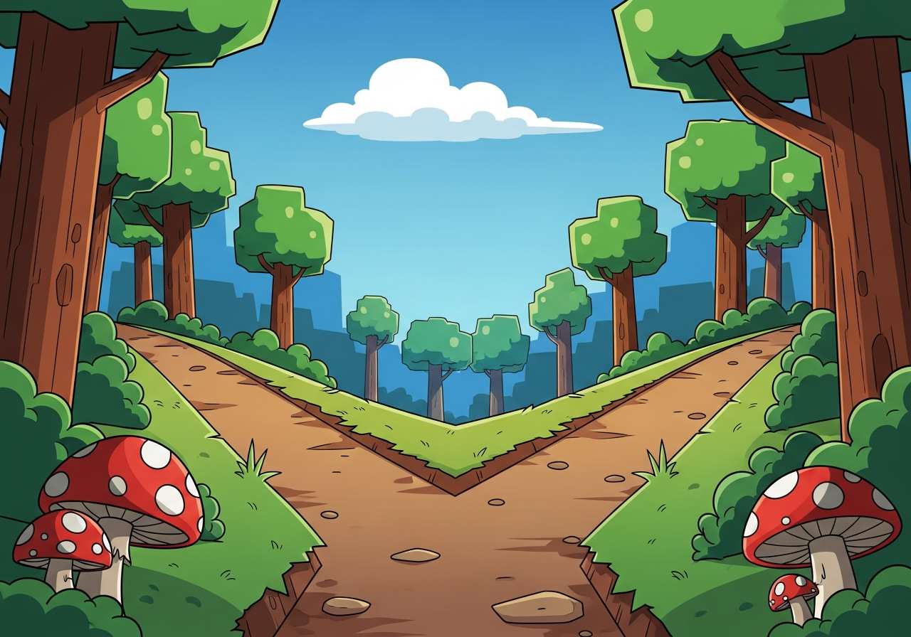 その道は丘の頂上で二つの小道に分岐する。