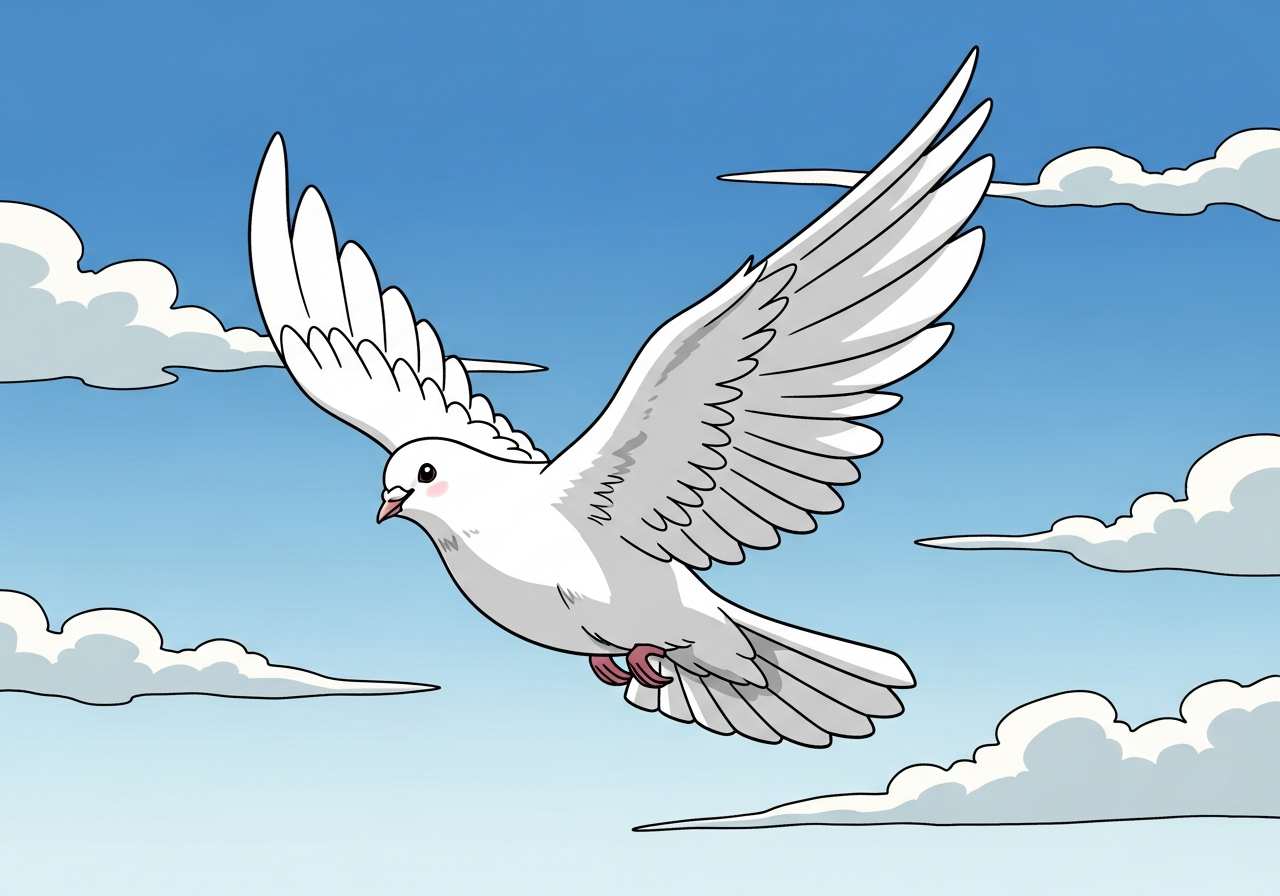 平和や愛の象徴として知られる小型の鳥。ハトの一種で、特に白い羽を持つものを指すことが多い。
