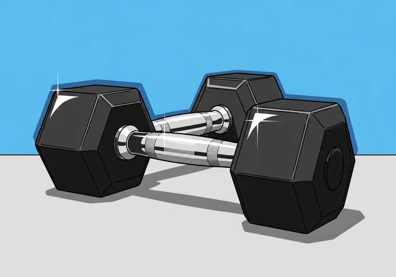 筋力トレーニングに使用する、両端に重りがついた短い棒状の器具。
