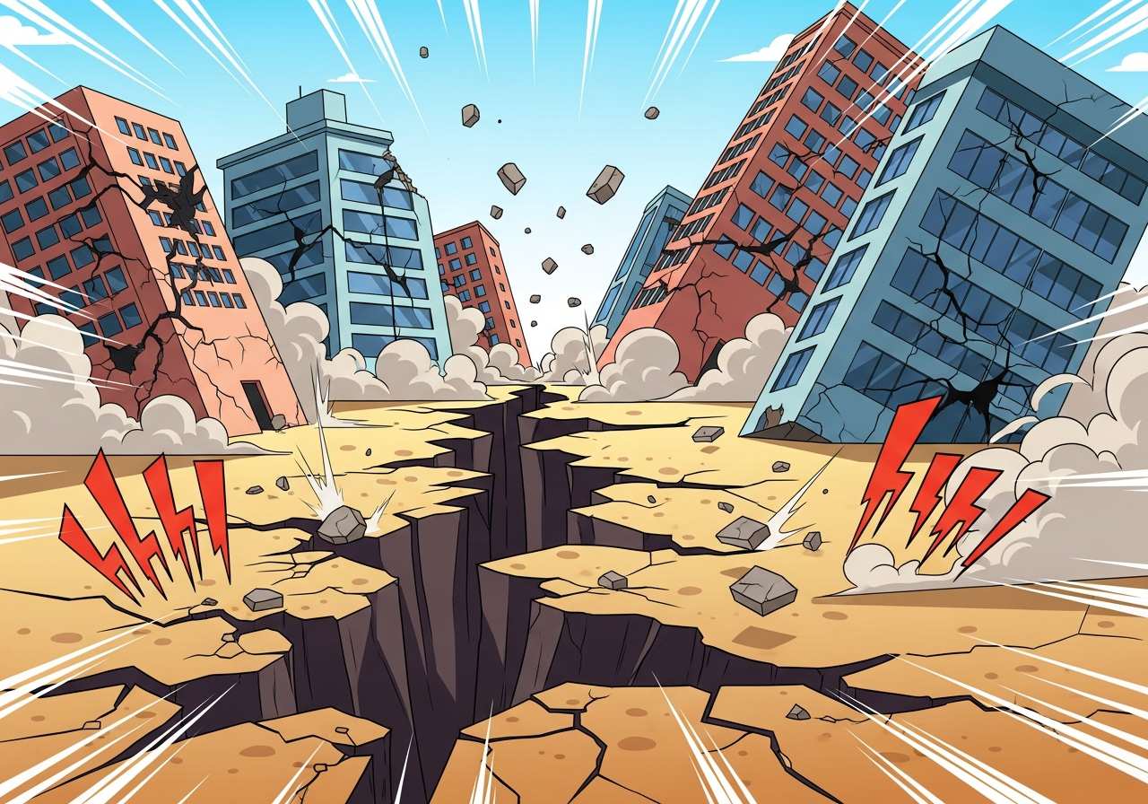 地球の表面が突然激しく揺れる自然現象。地殻変動によって引き起こされ、建物の倒壊や人命の損失などの被害をもたらすことがある。