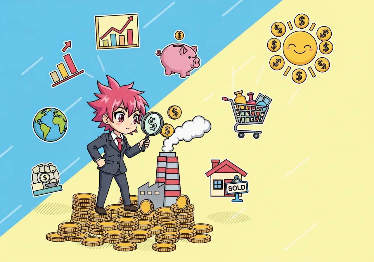 「economy」は、国や地域における財やサービスの生産・分配・消費のシステムを指す名詞です。また、節約や効率的な資源の使用という意味でも使われます。B2レベルの重要な経済用語です。