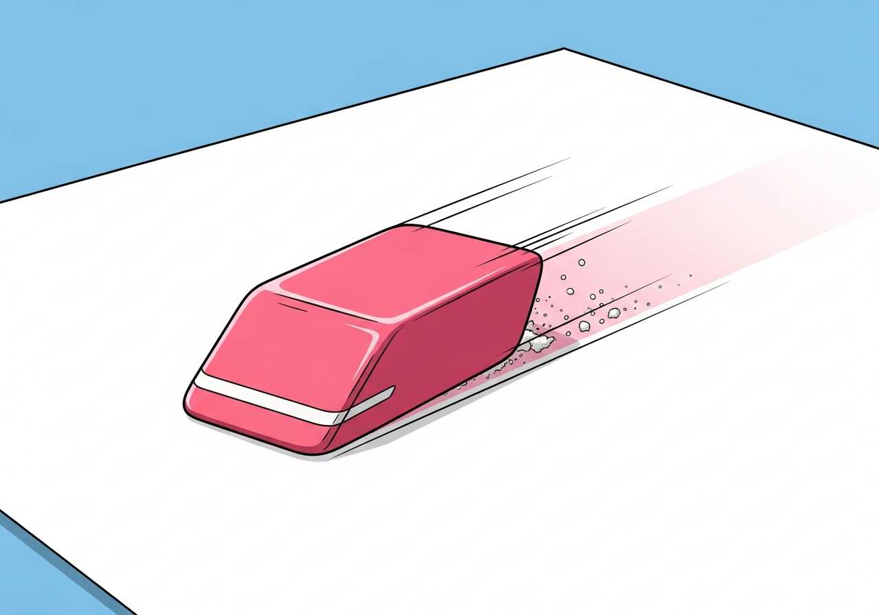 ラテン語の「erasum」(「eradere」の過去分詞で「削り取る」の意味)に由来します。「e-」(外へ)と「radere」(削る)から構成されています。