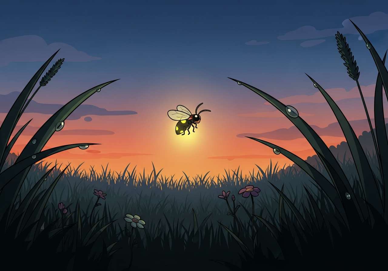 暖かい夏の夜、庭でホタルが光っているのを見ました。
