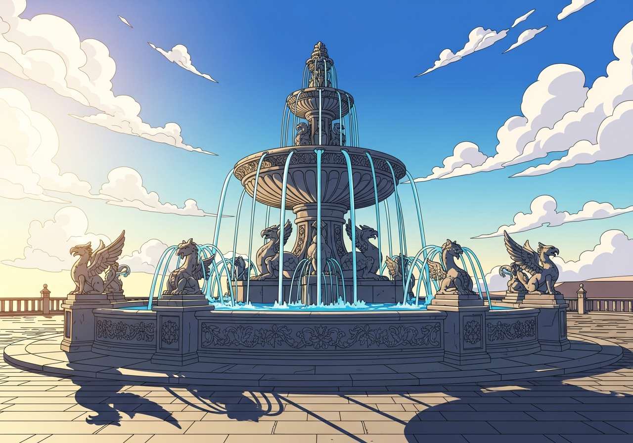 公園や広場などに設置され、水を噴き上げる装飾的な構造物。飲料水を提供する水飲み場も指します。