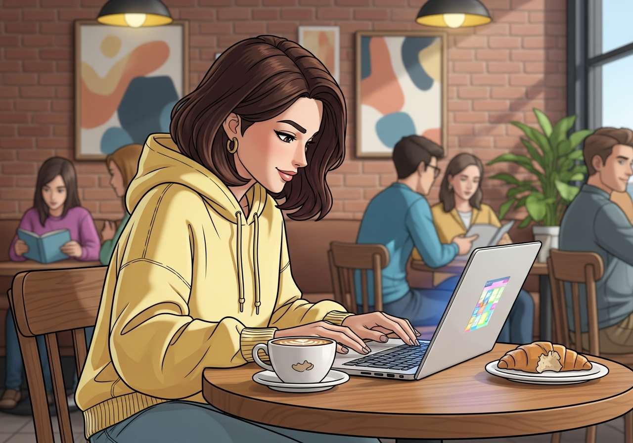 彼女は会社を辞めた後、グラフィックデザイナーとしてフリーランスで働くことにした。