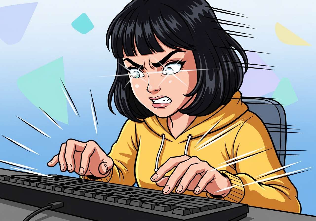 She was typing furiously to finish the report before the deadline.