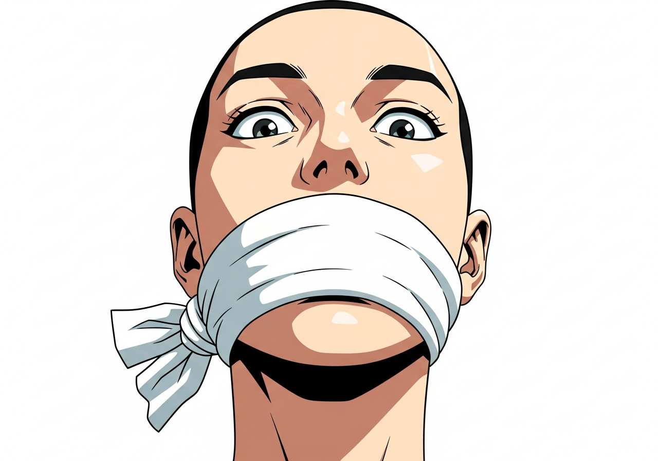 誘拐犯は人質の口に猿ぐつわをはめた。