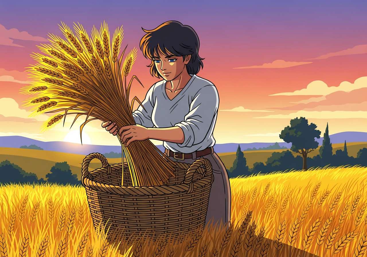 農家の人々は嵐が来る前に小麦を納屋に貯蔵した。