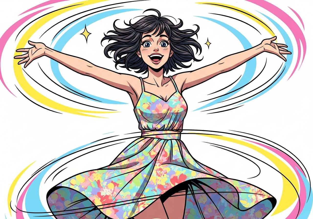 めまいがするような、または興奮して浮かれた状態を表す形容詞。高所や回転などで感じるふらつきや、喜びで頭がくらくらするような感覚を指します。