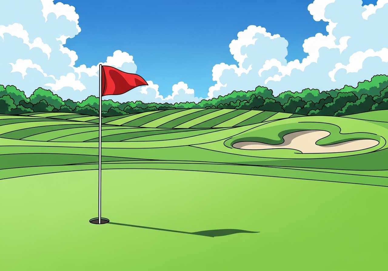 小さなボールをクラブで打ち、できるだけ少ない打数でコースの各ホールに入れることを目指すスポーツ